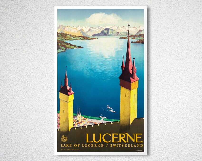 Lucerne, Lake of Lucerne, Suisse Vintage Travel Poster - Poster Paper or Canvas Print / Gift Idea / Wall Decor