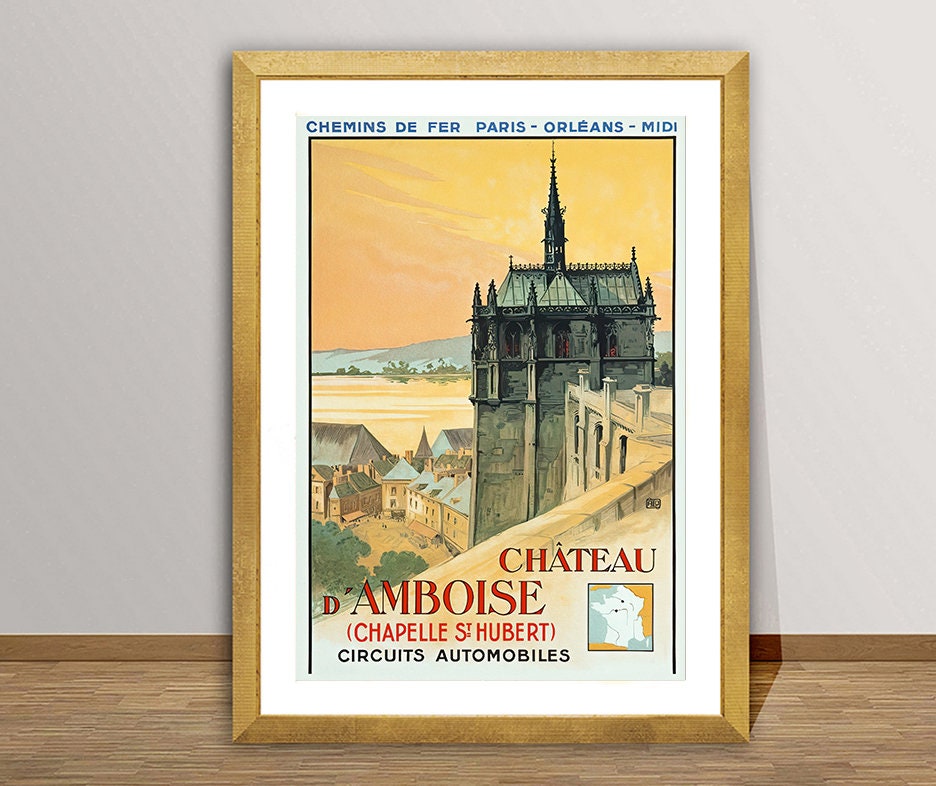 Chateau d'Amboise, France Vintage Travel Poster - Poster Paper or Canvas Print / Gift Idea