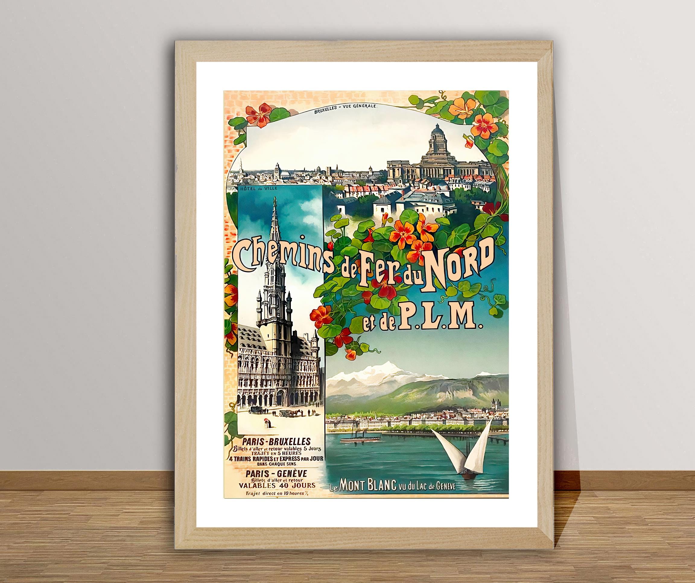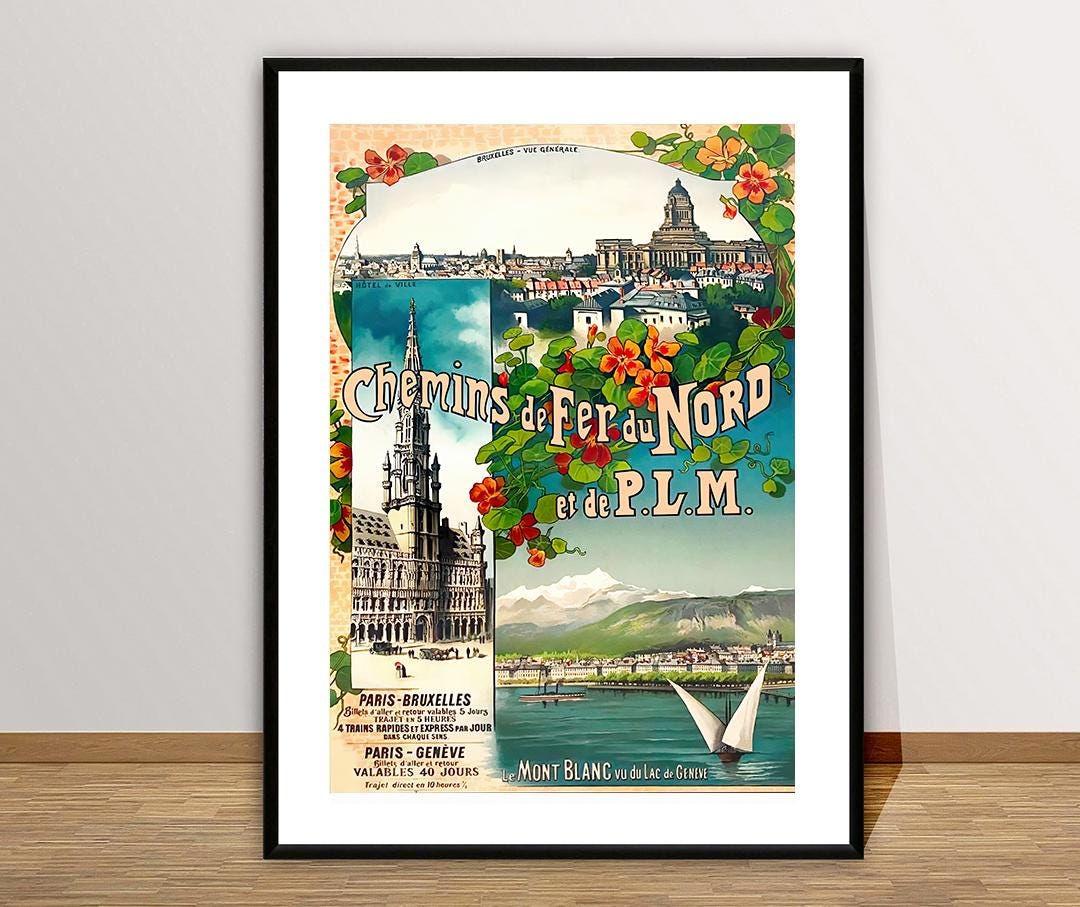 Chemin de Fer du Nord, Paris Bruxelles Vintage Travel Poster - Poster Paper or Canvas Print / Gift Idea / Wall Decor