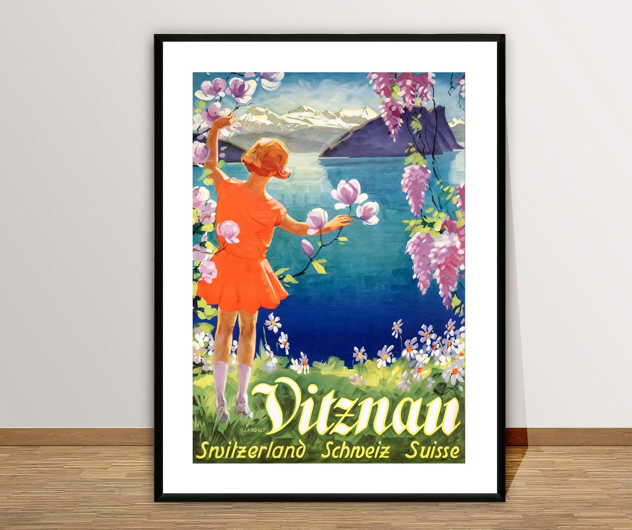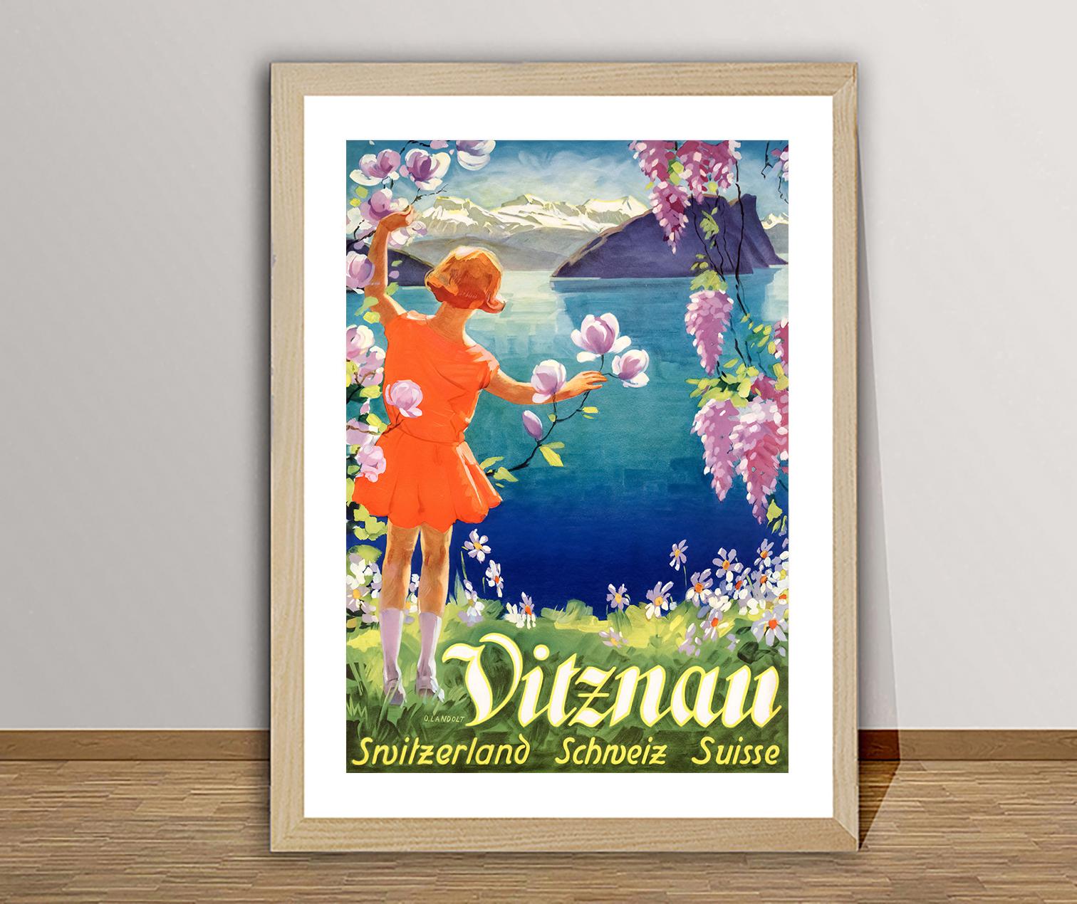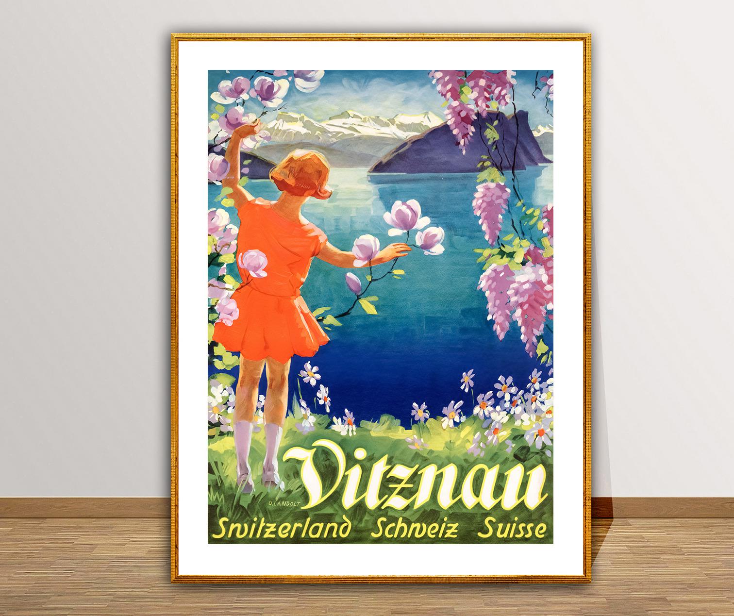 Vitznau Switzerland Vintage Travel Poster: Swiss Art Print