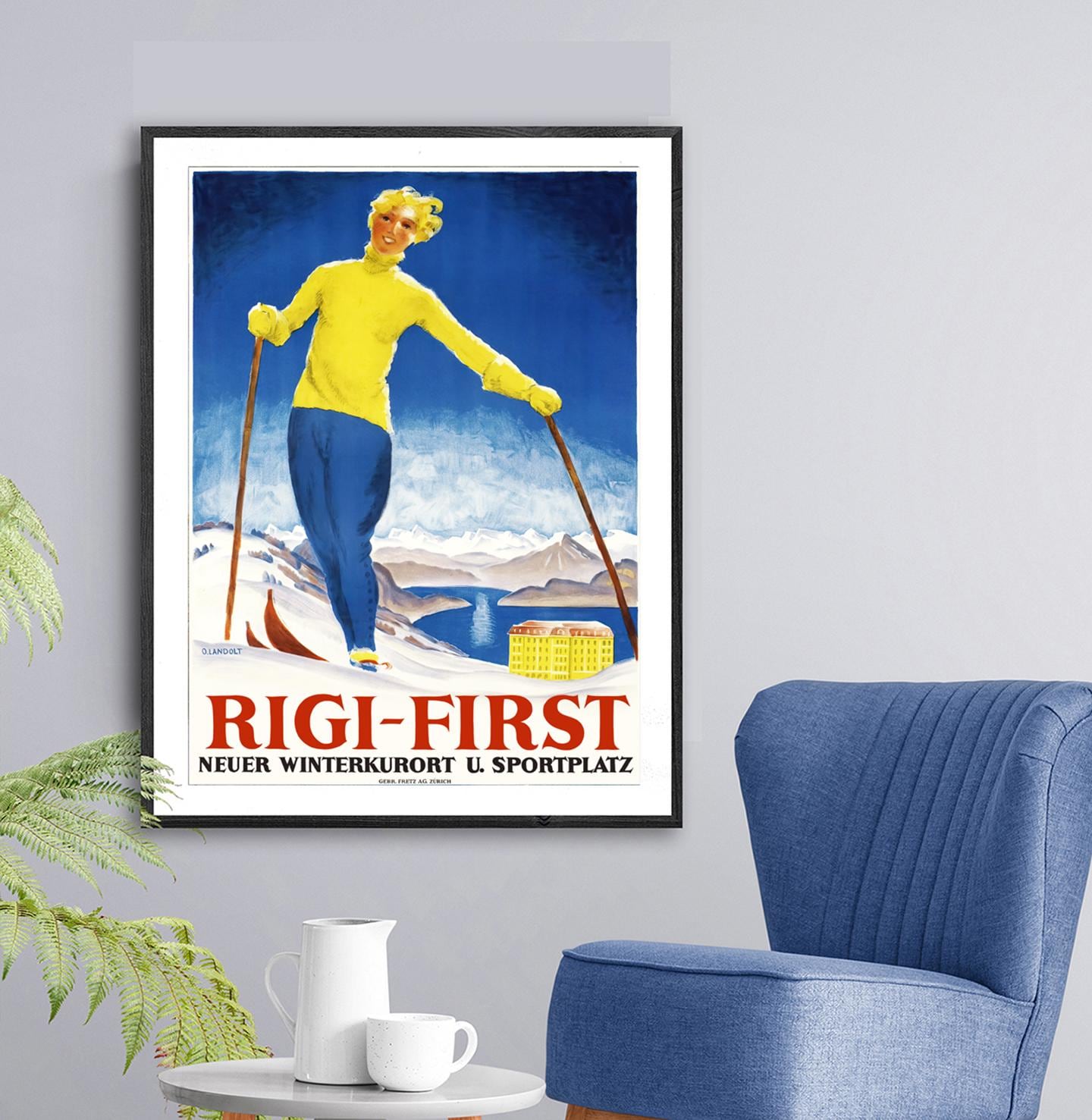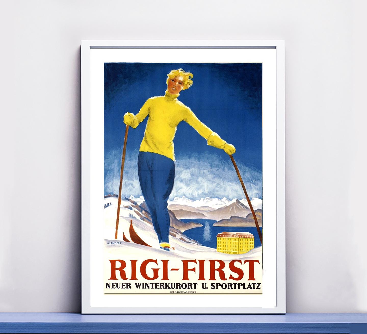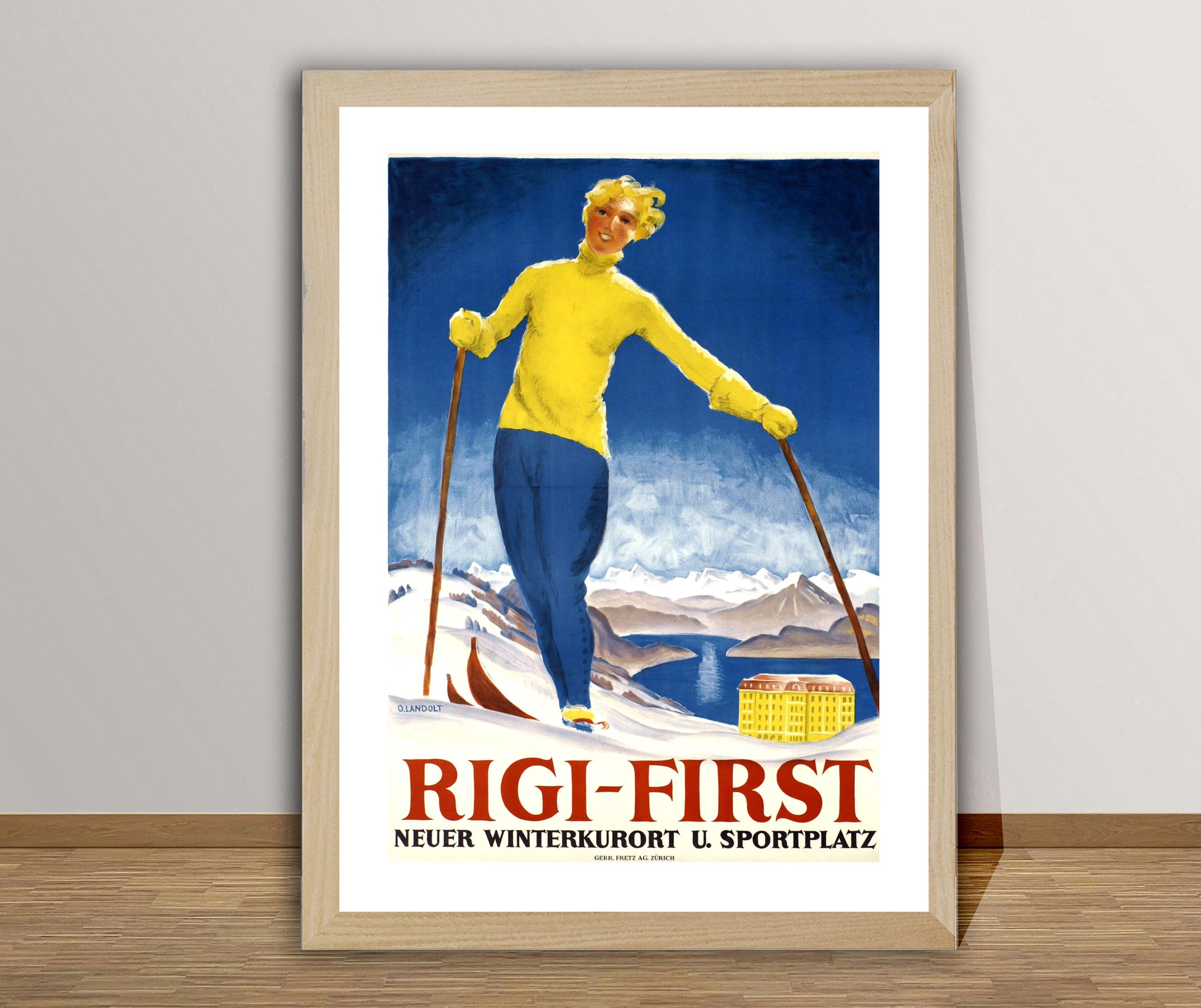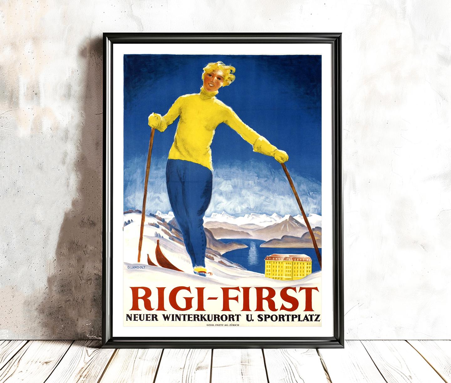Vintage Rigi First Ski Poster: Swiss Winter Travel Art