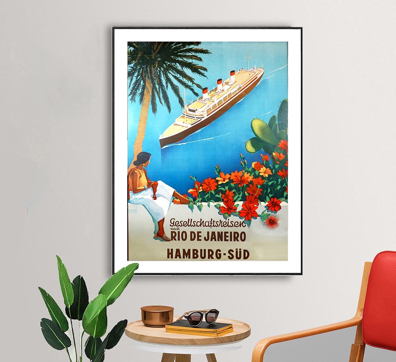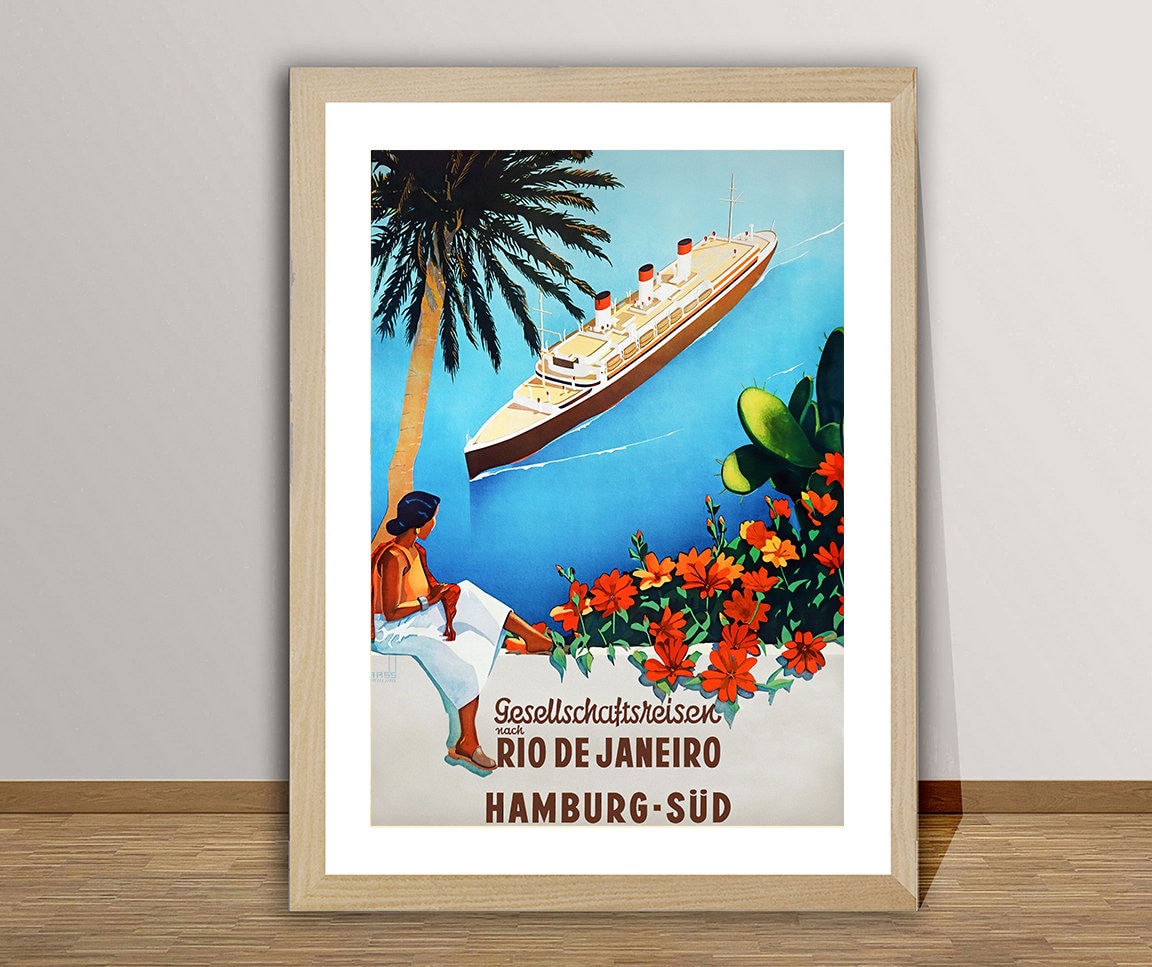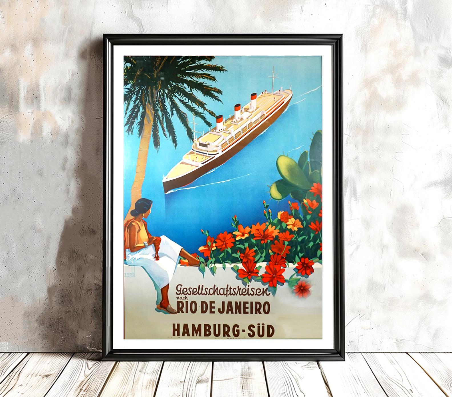 Rio de Janeiro Vintage Travel Poster: Brazil Cruise Art Print