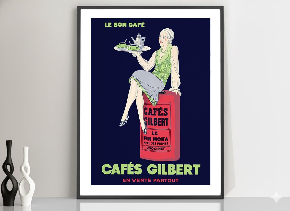 Vintage Cafes Gilbert, Le Bon Cafe Advertisement Art Print - Reproduction of a Vintage Food&Drink Artwork, Decorative Purposes Wall Decor - Poster Print or Canvas Print
