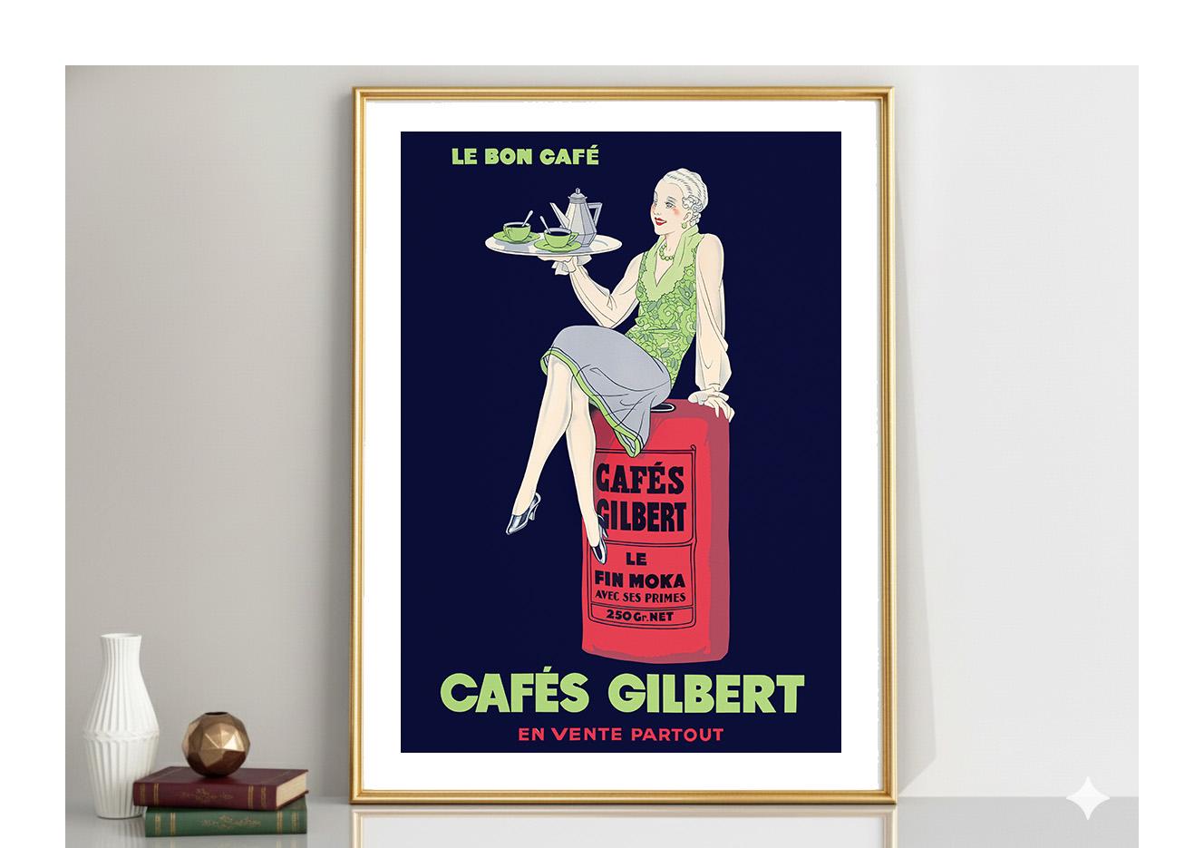 Vintage Cafes Gilbert, Le Bon Cafe Advertisement Art Print - Reproduction of a Vintage Food&Drink Artwork, Decorative Purposes Wall Decor