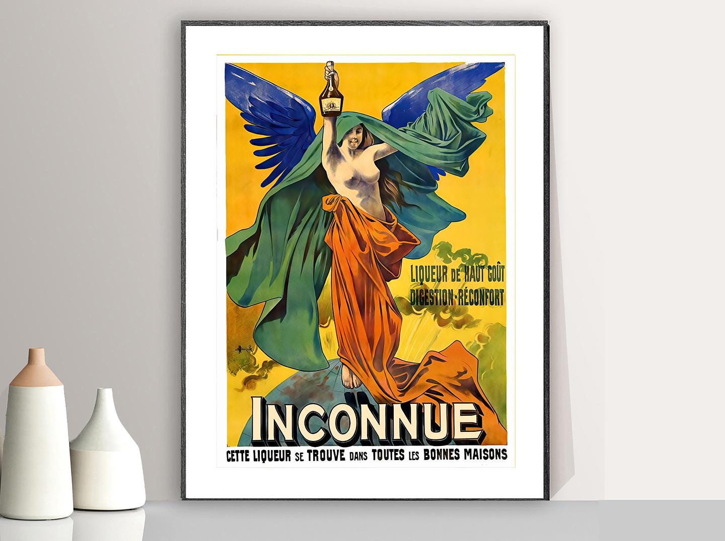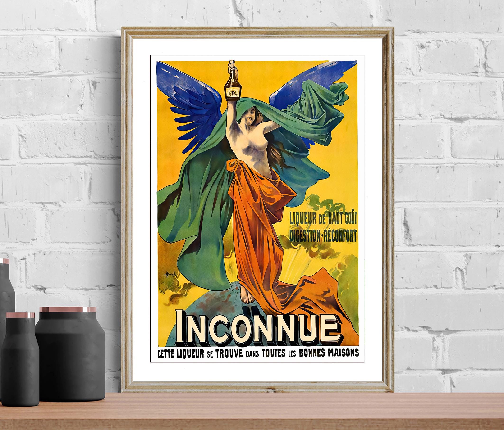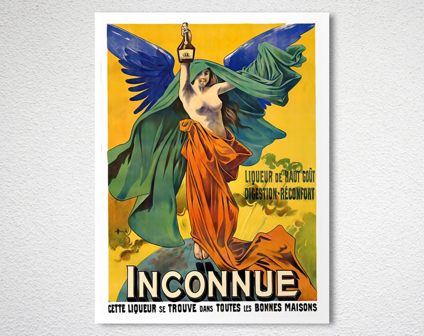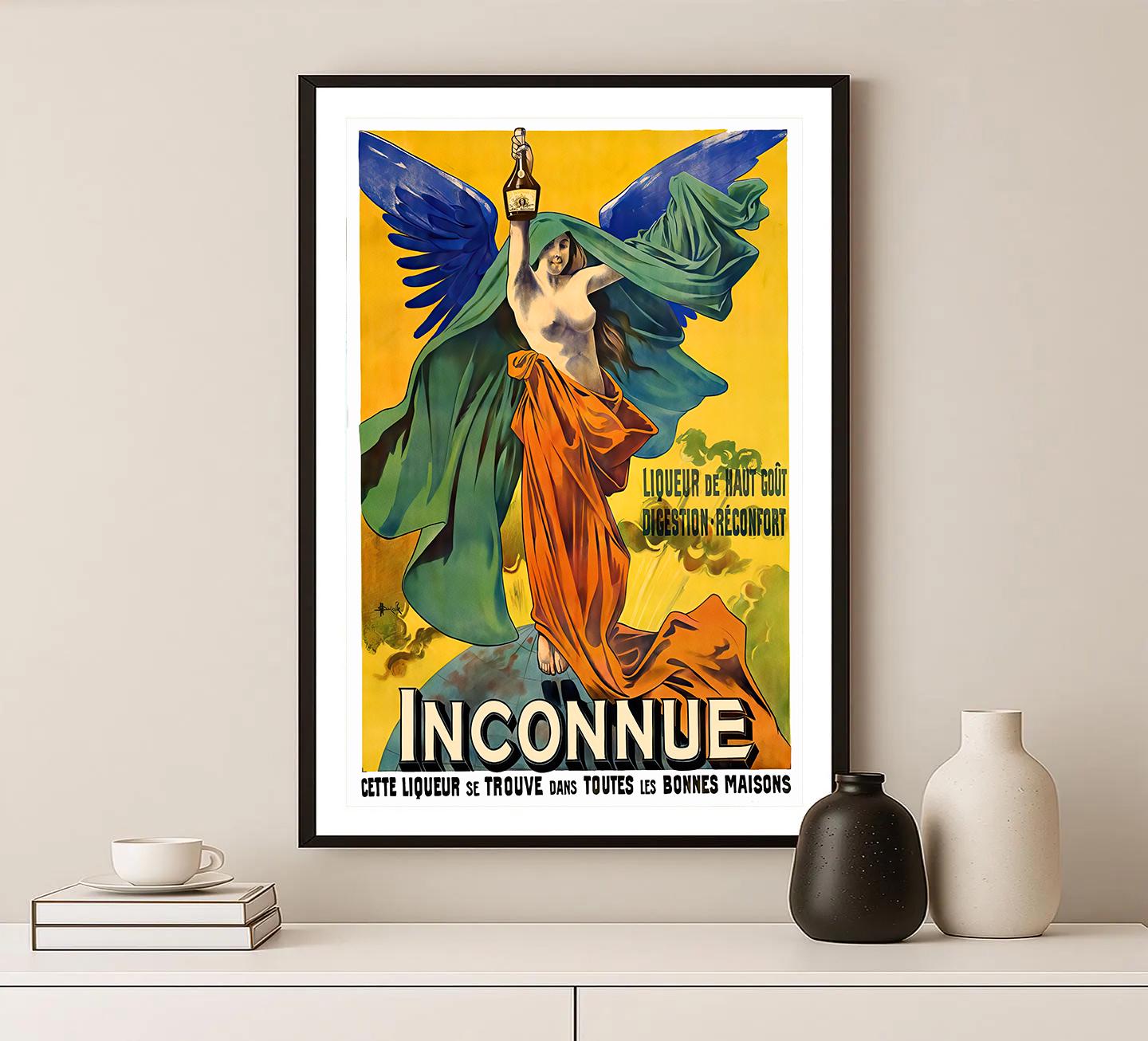 Vintage Inconnue Liqueur Advertisement Art Print - Reproduction of a Vintage Drink Artwork, Decorative Purposes Wall Decor - Poster Paper or Canvas Print