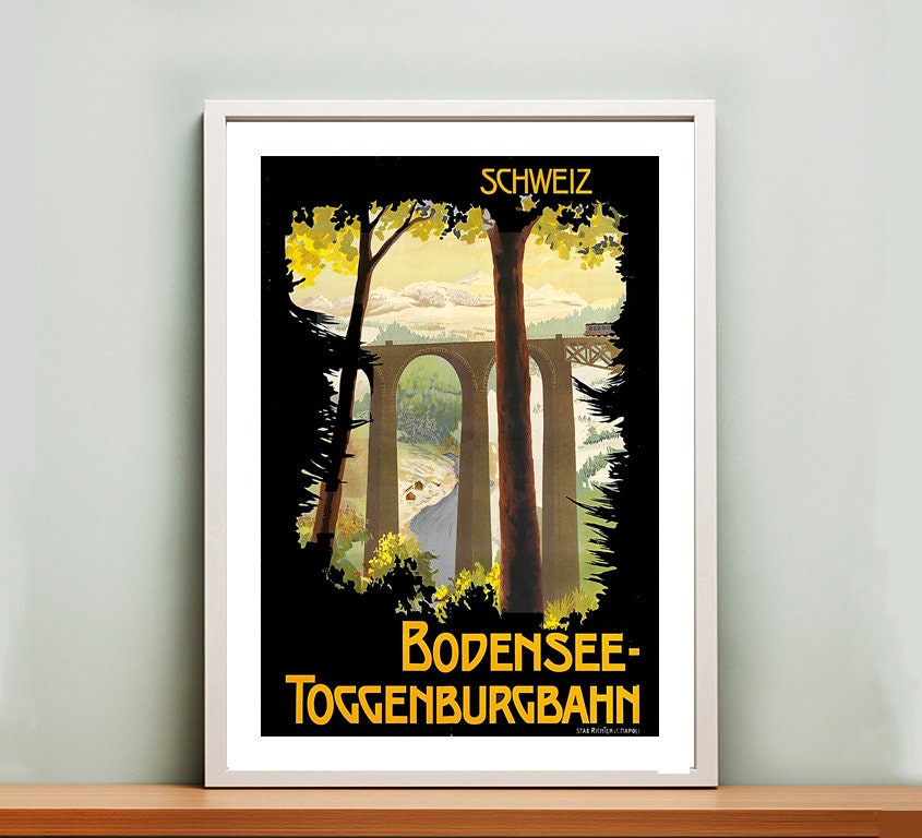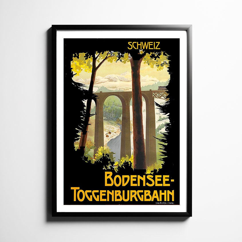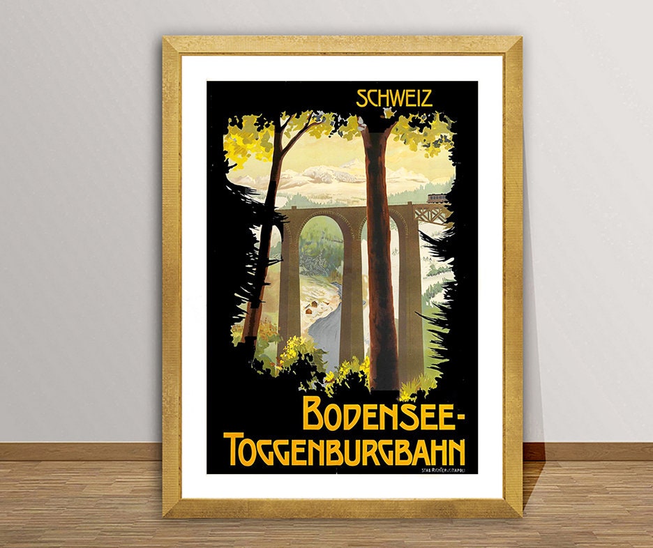Bodensee Toggenburgbahn Suisse Vintage Travel Poster - Poster Paper or Canvas Print / Gift Idea / Wall Decor